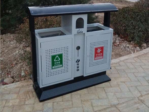 產品采用優質鍍鋅板材,經過裁剪、折彎,一次加工而成,經過焊接和打磨成型,后期經過戶外除塵靜電噴漆的工藝進行噴塑上色。極大的延長了垃圾桶的使用壽命,使顏色亮麗程度更加持久,艷麗如初。所選塑粉均為優質的全新料,再經過酸洗、磷化、噴塑等諸多工序,令桶身表面光潔平滑,色澤靚麗。桶身上采用沖孔工藝,使整桶更加美觀,增加了垃圾桶的通氣性,有效防止細菌的滋生。